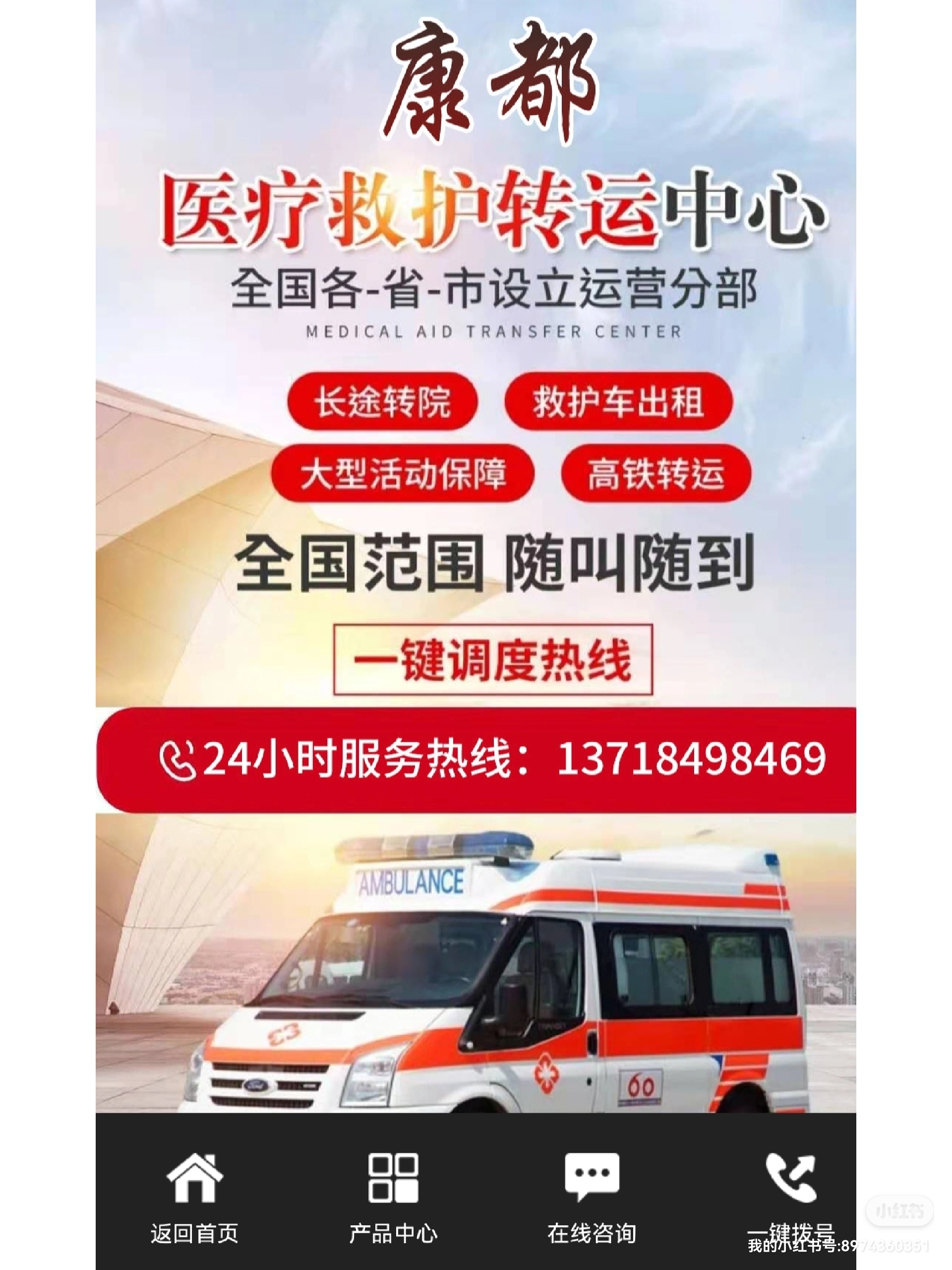 南丰县120救护车长途转运跟大家聊聊如何办理救护车牌照:1.根据许可证税第七条的规定:卫生机关和公共组织设立的医院、具有固定特殊设备和特殊标志的交通工具,如救护车、诊疗车、洒水车、水肥车、垃圾车等,免征许可证税/燃料税;前一项免征许可证税的交通工具,使用前应办理免征手续!2.申请人应准备件/申请机关单位:一、申请设立。(一)民营救护车机构设立许可申请表。(二)设置计画书。下列事项应按规定说明:1.业